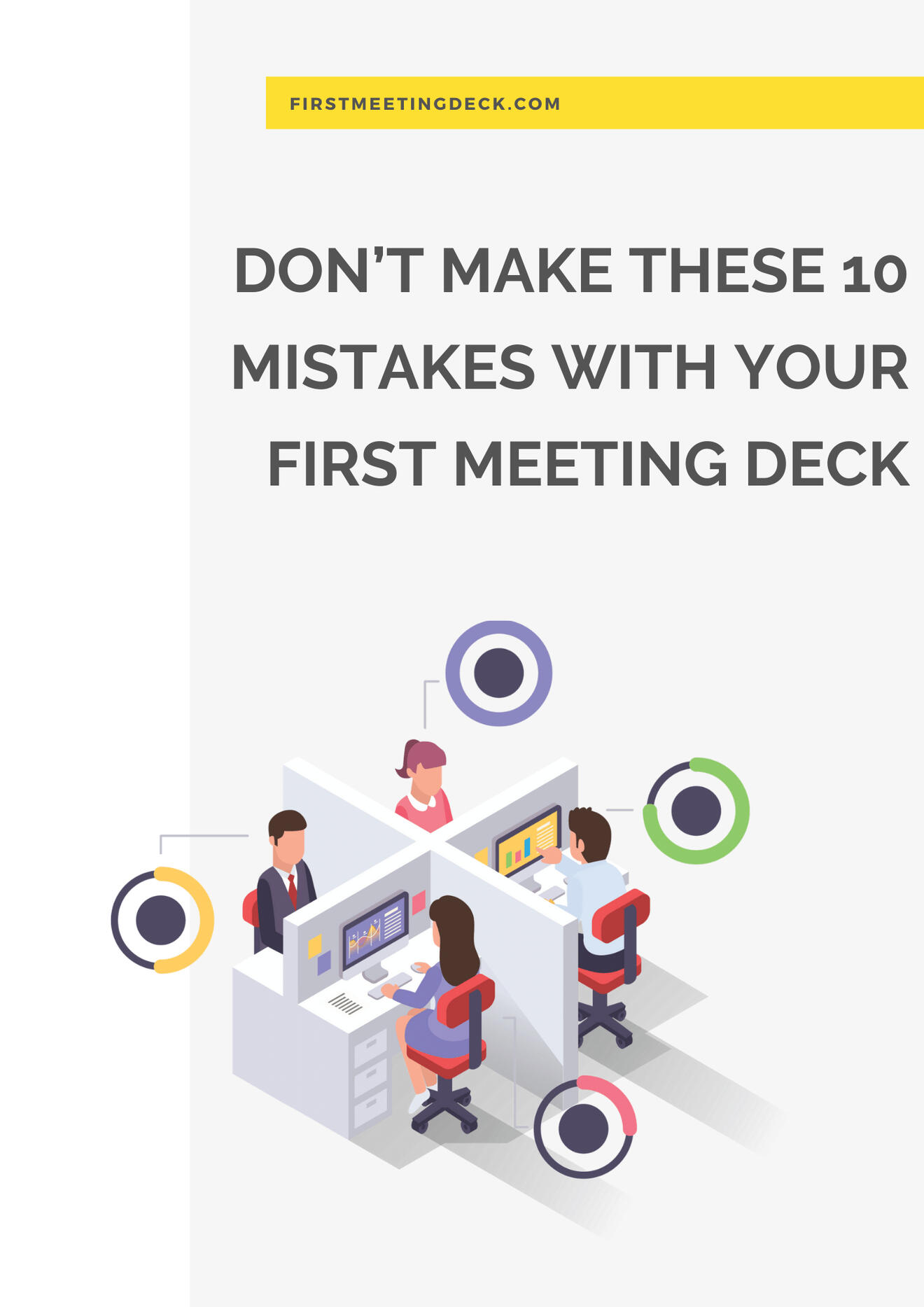 Too often prospects are confused, bored, distracted, or multitasking during a first meeting. There isn't any engaging conversation and afterward, we tell ourselves that “they didn’t get it".Having worked on dozens of first meeting decks there are 10 common mistakes I see that need to be avoided for the deck to engage them and be effective.